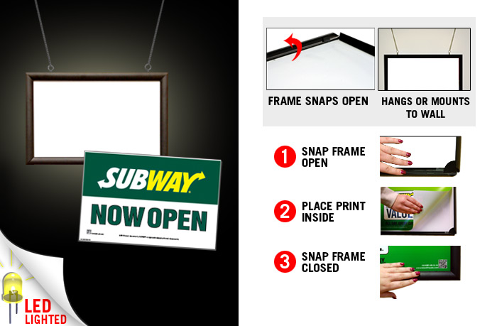12" x 18" LED Lighted Snap Frame with Print - "Now Open" Lighted Sign