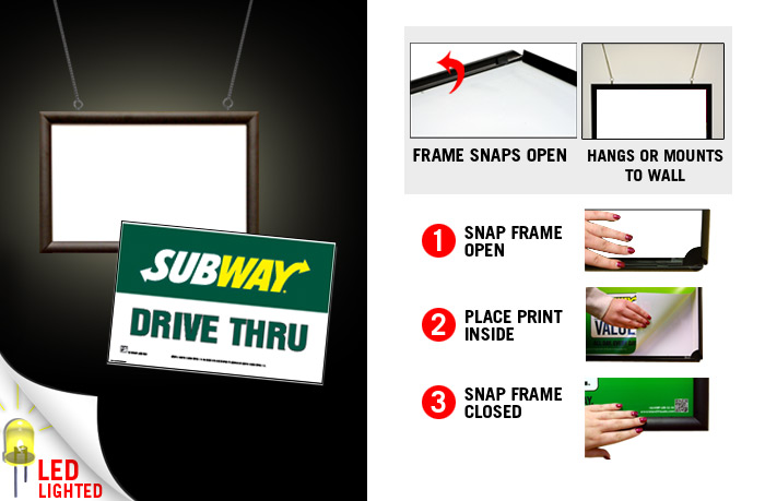 12" x 18" LED Lighted Snap Frame with Print - "Drive Thru" Lighted Sign