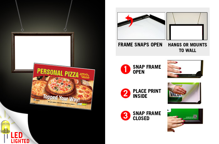 12" x 18" LED Lighted Snap Frame with Print - "Personal Pizza" Lighted Sign