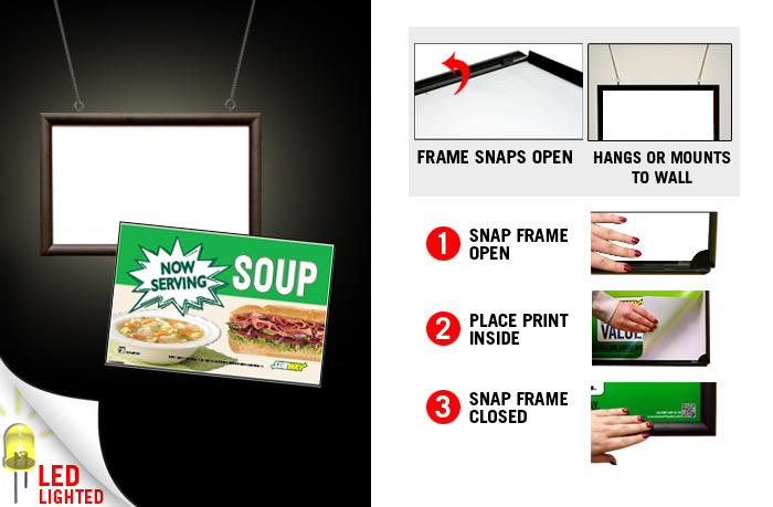 12" x 18" LED Lighted Snap Frame with Print - "Now Serving Soup" Lighted Sign