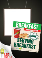 24" x 24" LED Snap Frame with Print - "Now Serving Breakfast" Lighted Sign