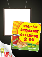 24" x 24" LED Snap Frame with Print - "Stop For Breakfast - Get Lunch to Go" Lighted Sign