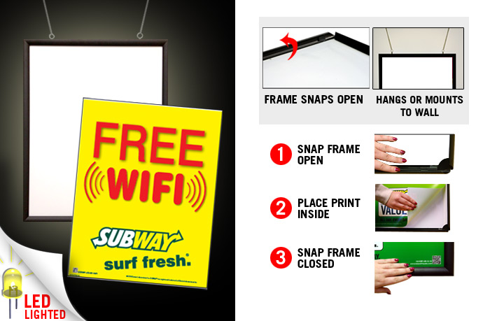 22"x28" LED Snap Frame with Print - "Free Wifi" Lighted Sign