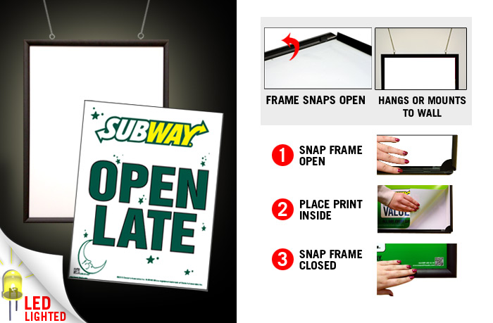 22"x28" LED Snap Frame with Print - "Open Late" (white) Lighted Sign