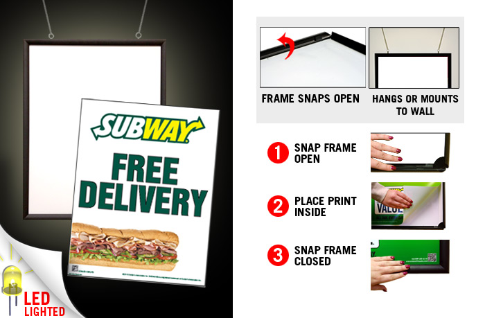 22"x28" LED Snap Frame with Print - "Free Delivery" Lighted Sign