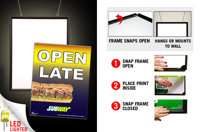 22"x28" LED Snap Frame with Print - "Open Late" Lighted Sign