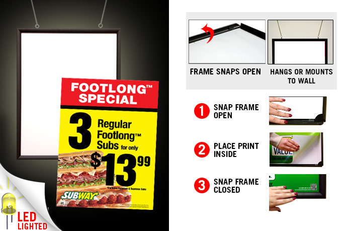 22"x28" LED Snap Frame with Print - "3 Regular Footlong Subs for $13.99" (Yellow) Lighted Sign