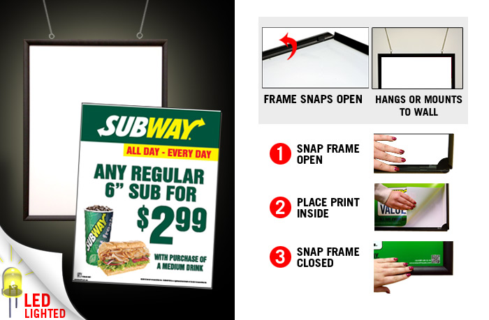 22"x28" LED Snap Frame with Print - "6 Inch Sub for $2.99" Lighted Sign