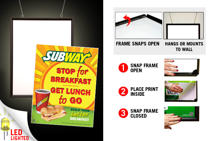 22"x28" LED Snap Frame with Print - "Stop For Breakfast - Get Lunch to Go" Lighted Sign