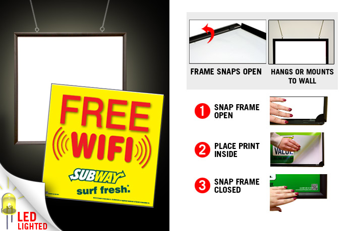 24" x 24" LED Snap Frame with Print - "Free Wifi" Lighted Sign