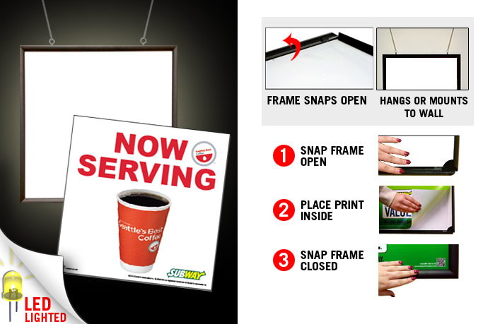 24" x 24" LED Snap Frame with Print - "Seattles Best Coffee" Lighted Sign