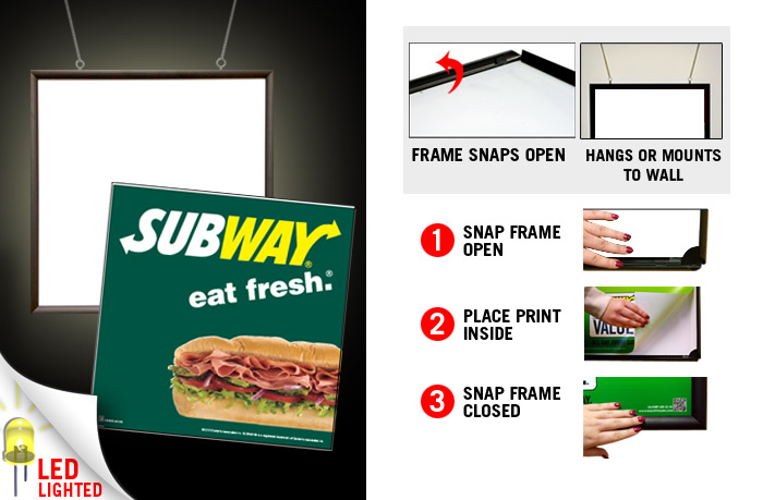 34" x 34" LED Snap Frame with Print - "Subwat Eat Fresh" Lighted Sign