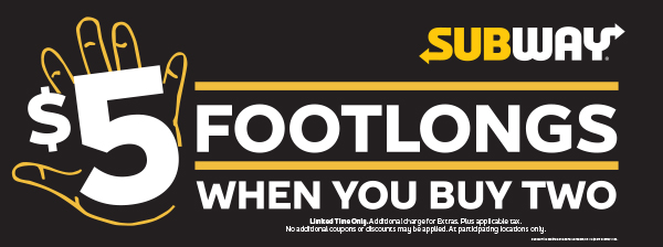 44" x 120" Horizontal "$5 Footlong When You Buy 2" Banner