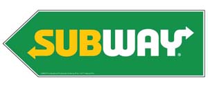 Folding 30 tall white plastic frame with subway logo. Double sided outdoor sign.