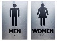 Brushed Aluminum Restroom Sign - Men + Women Bundle (ADA Compliant)