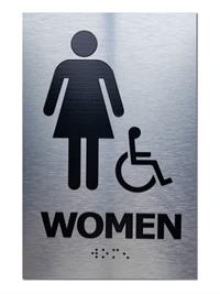 Brushed Aluminum Restroom Sign - Women Handicap (ADA Compliant)
