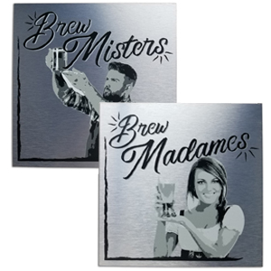 Brushed Aluminum Brewery Restroom Sign Set, Brew Misters & Brew Madames